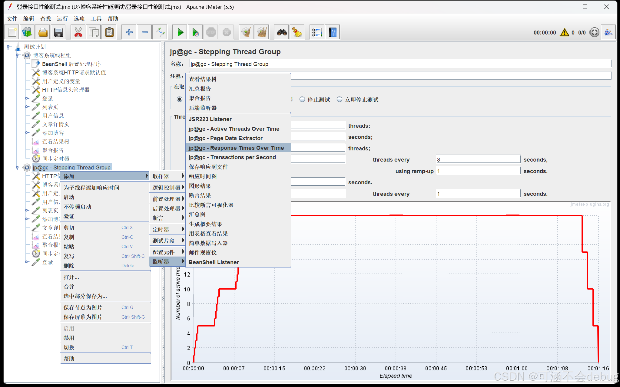 Response Times Over Time主要用于监听整个事务运行期间的响应时间。在测试过程中,它可以帮助测试人员观察并分析响应时间的实时平均值以及整体响应时间的走向。通过这一监听器,测试人员能够更直观地了解系统在不同时间点的响应性能,从而发现可能存在的性能问题或瓶颈。