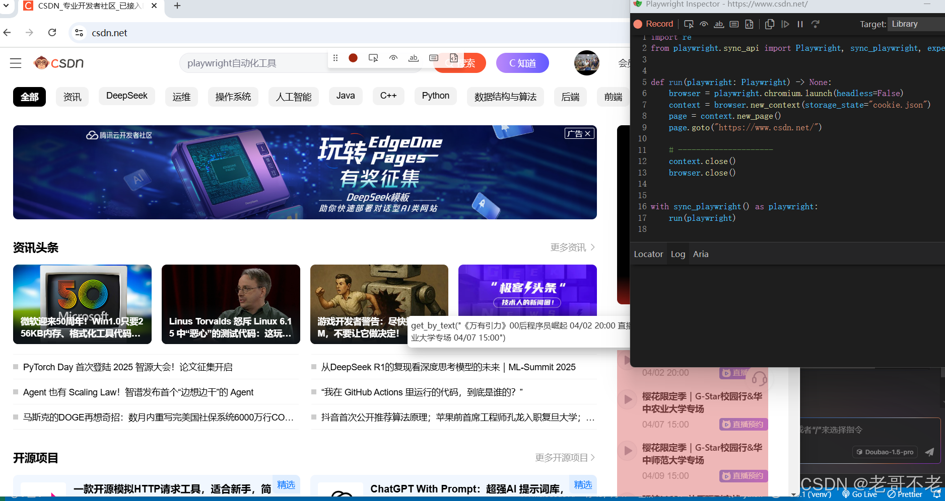 三、Playwright 脚本录制参数实战(以 CSDN 为例)