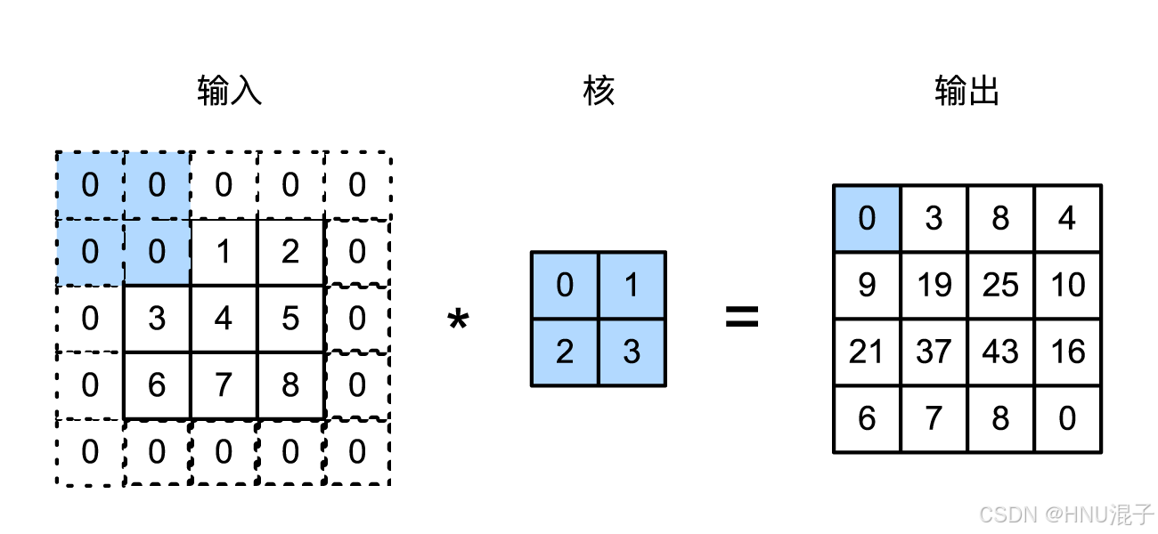 这里N_i 是第i个batch,Cout_j 是指第j个输出通道的输出值,星号代表在二维区域用weight权重核对input区域做一次卷积。