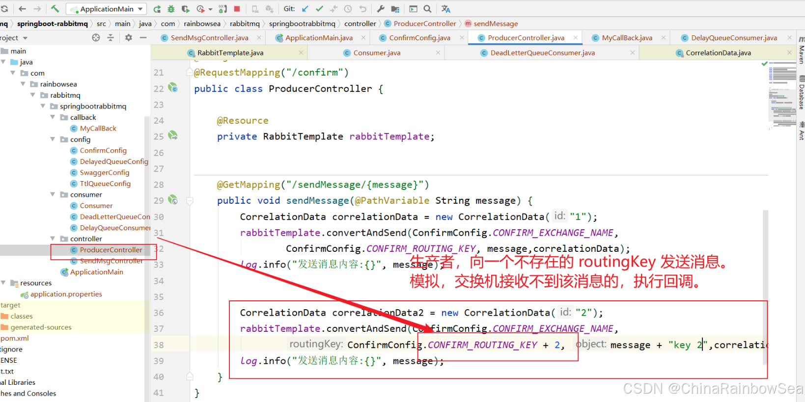 首先:我们需要在application.properties配置文件当中需要添加 spring.rabbitmq.publisher-confirm-type=correlated 配置信息