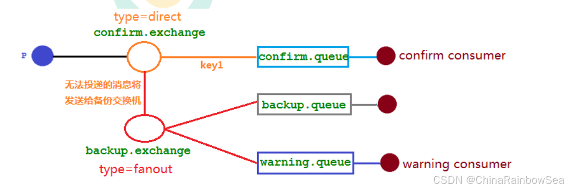 // 声明备份队列绑定关系(与配用交换机进行绑定)