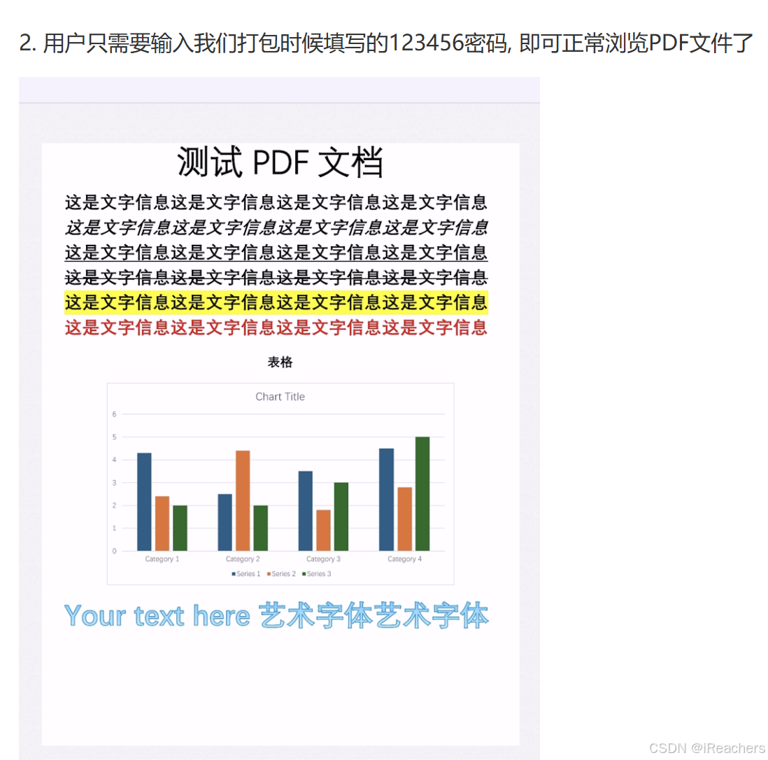 - 用户只需要输入我们打包时候填写的123456密码, 即可正常浏览PDF文件了
