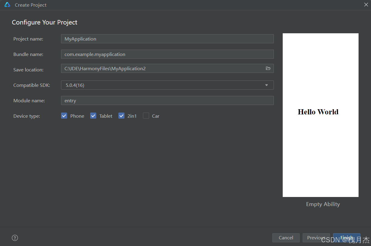 点击Create Project,选择Empty Ability,点next