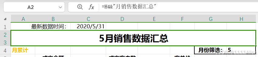 由表格可以看到,点击"5月销售数据汇总"后发现其联动了H4列的月份数据,所以要优先处理月份数据便于后续联动。