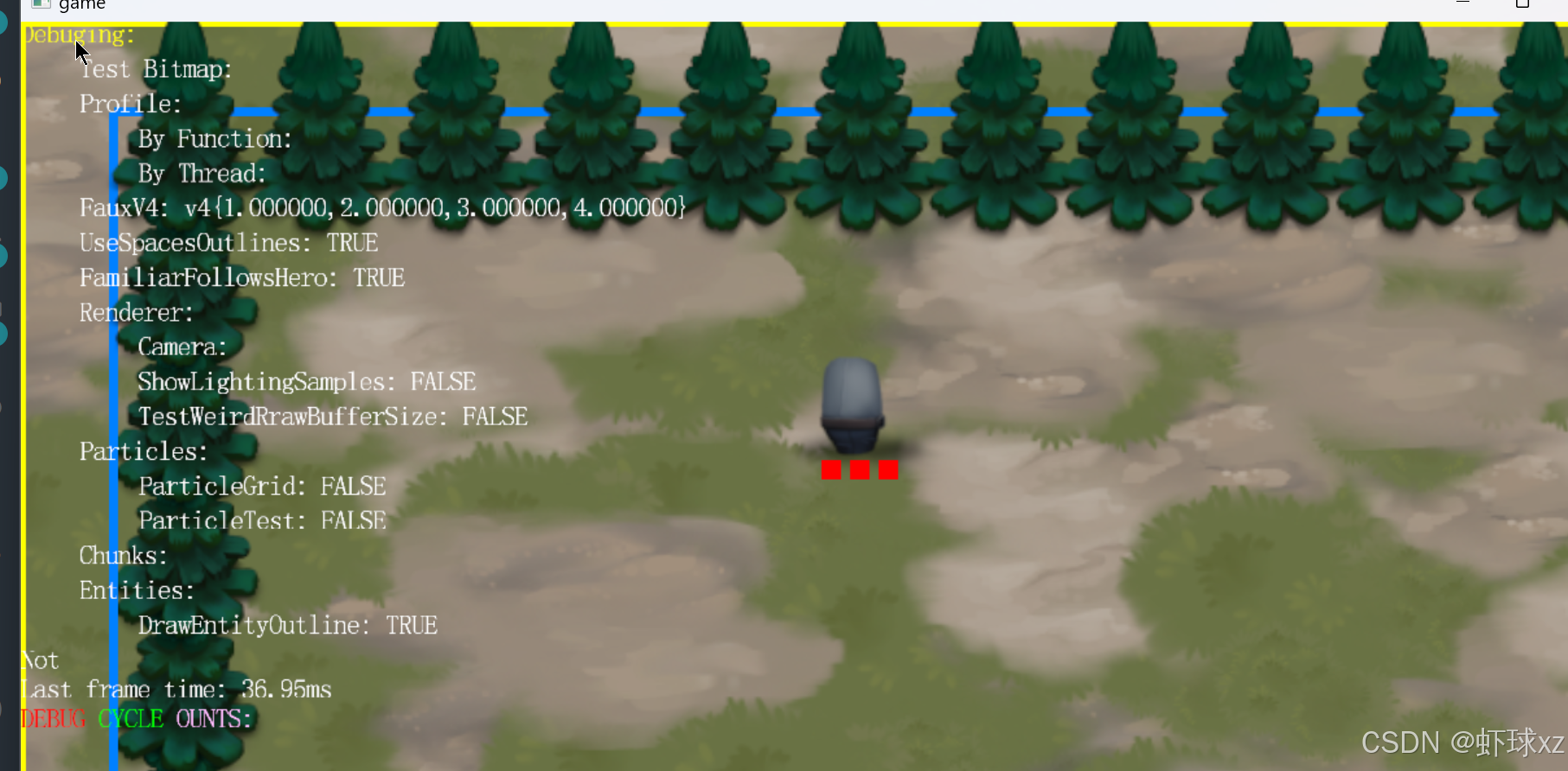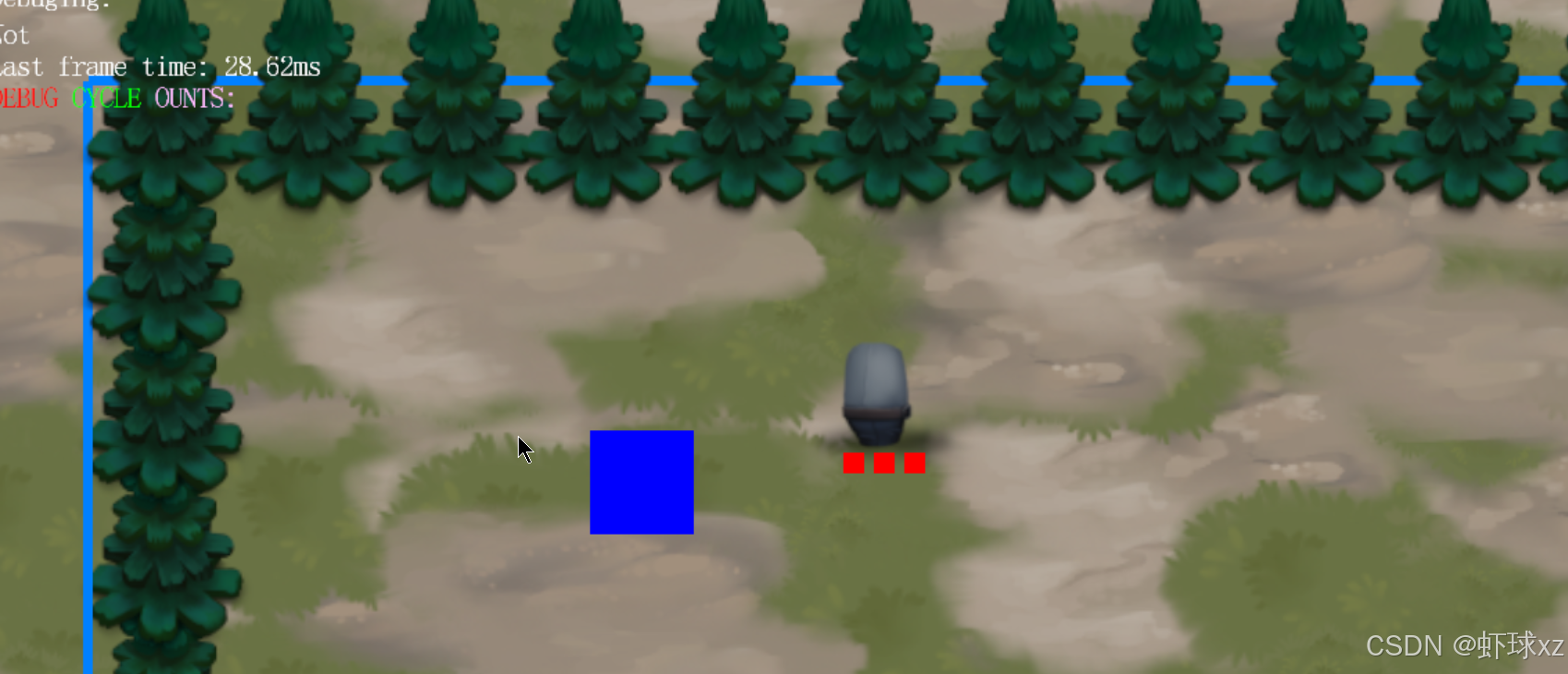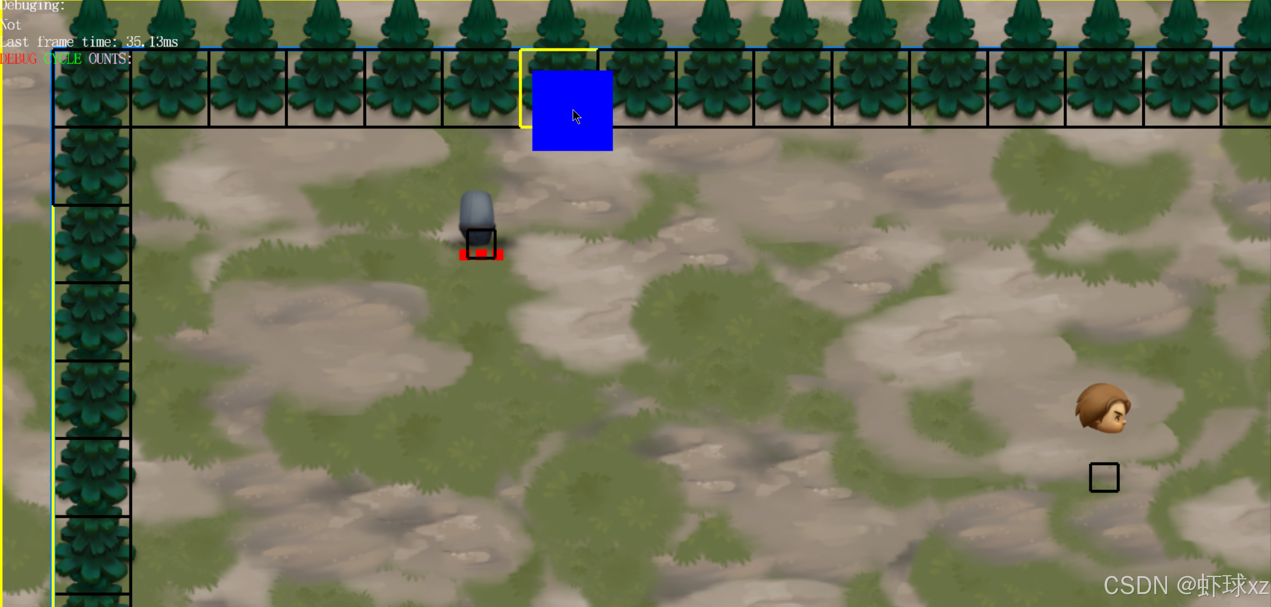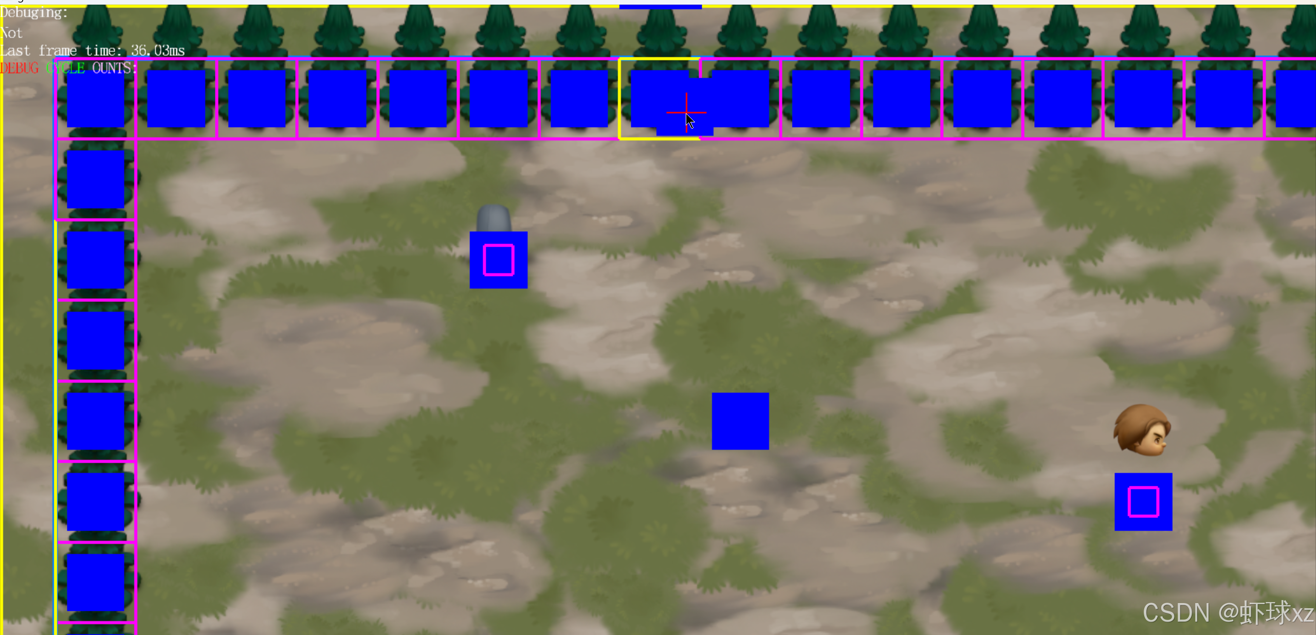 这样处理之后,我们可以在游戏正常进行的同时,灵活地使用鼠标移动来高亮显示不同的实体,观察它们的碰撞体信息。