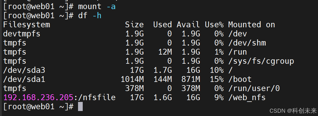 1.2.5.部署共享存储,nfs01为服务端,web01为客户端