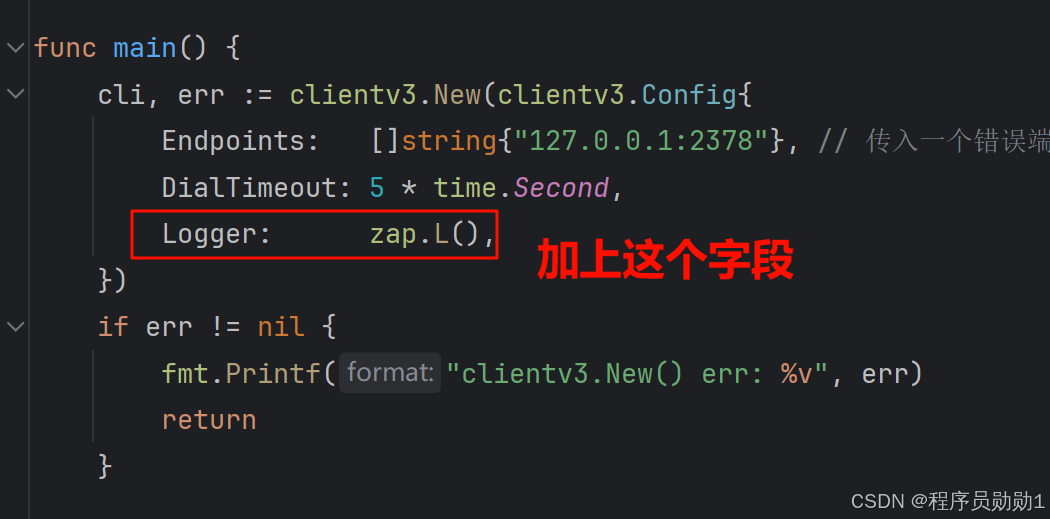 Endpoints: []string{"127.0.0.1:2378"}, // 传入一个错误端口2378