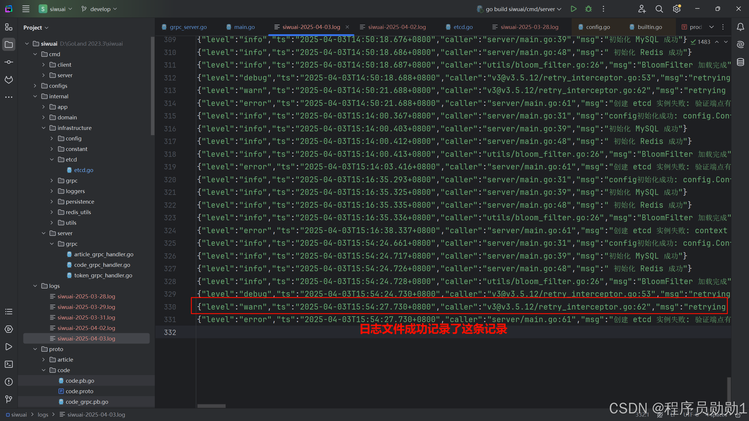 但是,描述了错误原因的这条日志,他只是自动打印在控制台了,并不是打印在日志文件中,这样我们日后还是不方便排查问题,那我们如何将其打印在日志文件中呢?有需求的小伙伴可以继续往下看。