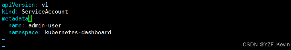 (1)执行新建文件命令 vi dashboard-adminuser.yaml 文件内容如下图
