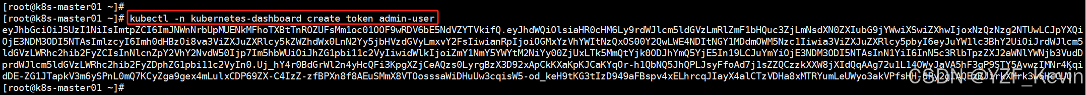 步骤九:产生token,命令 kubectl -n kubernetes-dashboard create token admin-user