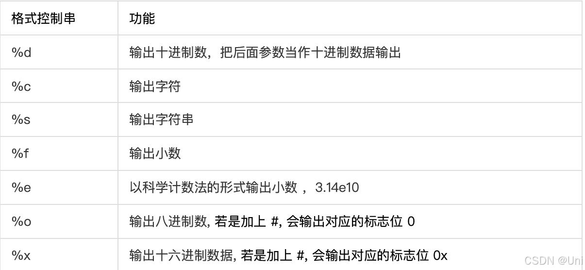 功能: 向屏幕上输出 ""中的内容,"" 中字符串原样输出, 格式控制串会被后⾯的参数给替换掉,参数的个数由格式控制串的个数来决定。