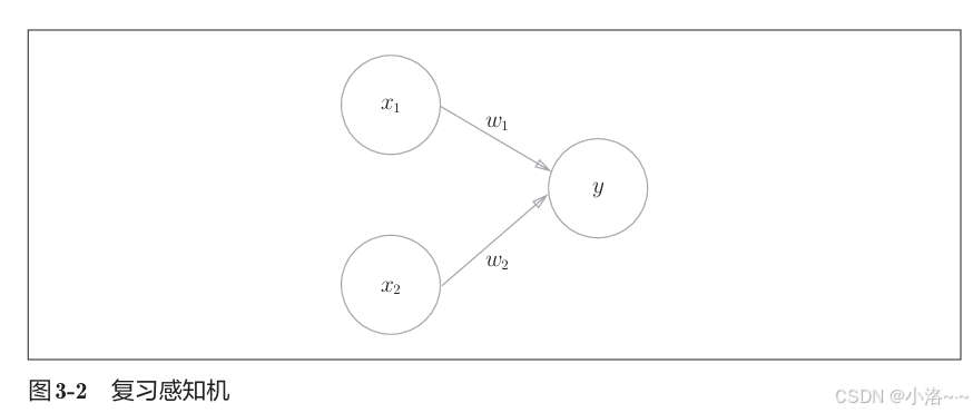 它接收两个输入信号 x 1 x_1 x1 和 x 2 x_2 x2,通过对应的权重 w 1 w_1 w1 和 w 2 w_2 w2 进行加权,然后输出一个值 y y y。