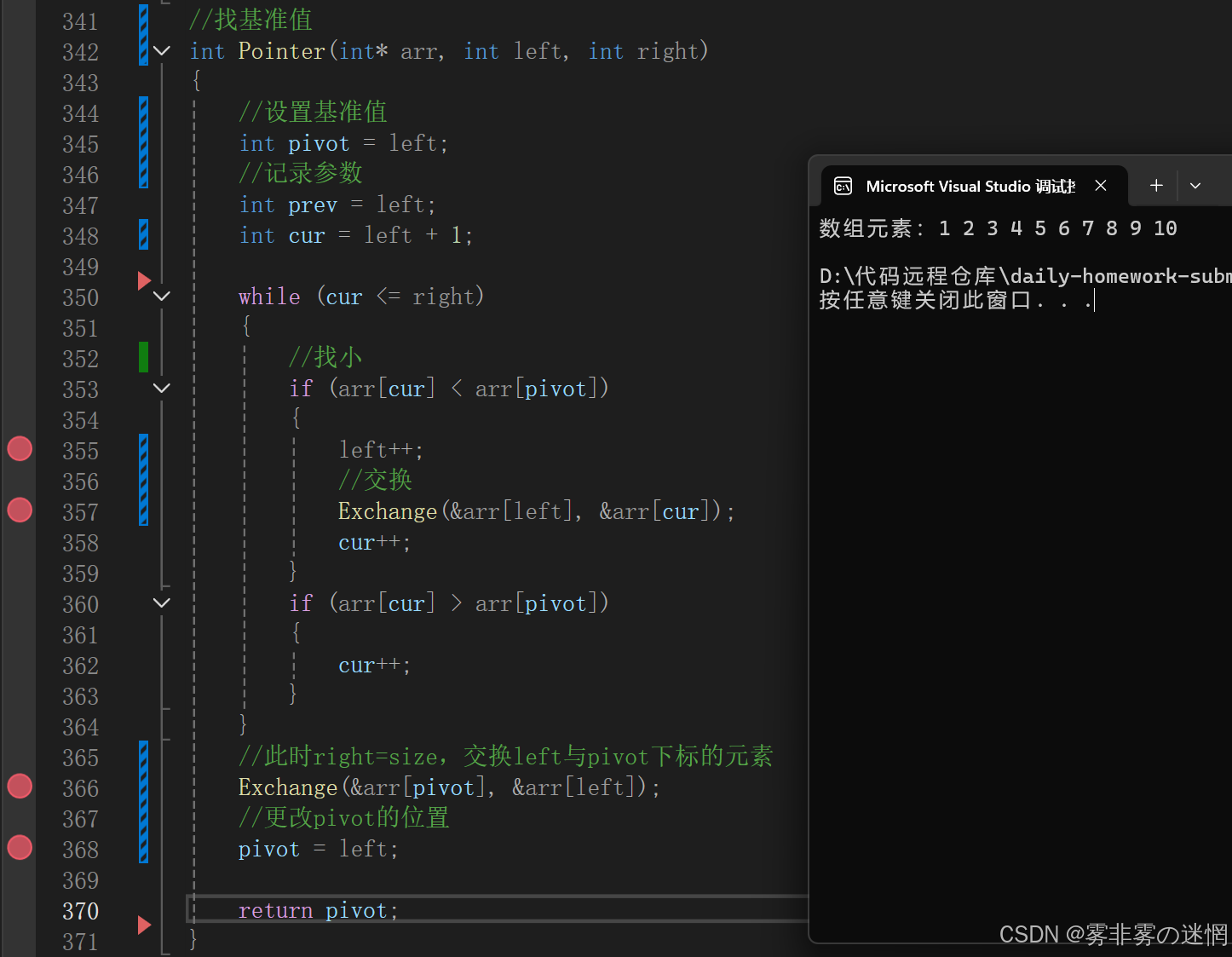 进入单趟函数Pointer 之后,此时单趟函数的参数也就是【arr,left,pivot-1】,这里为什么要设置这么多的参数呢?如下面的代码