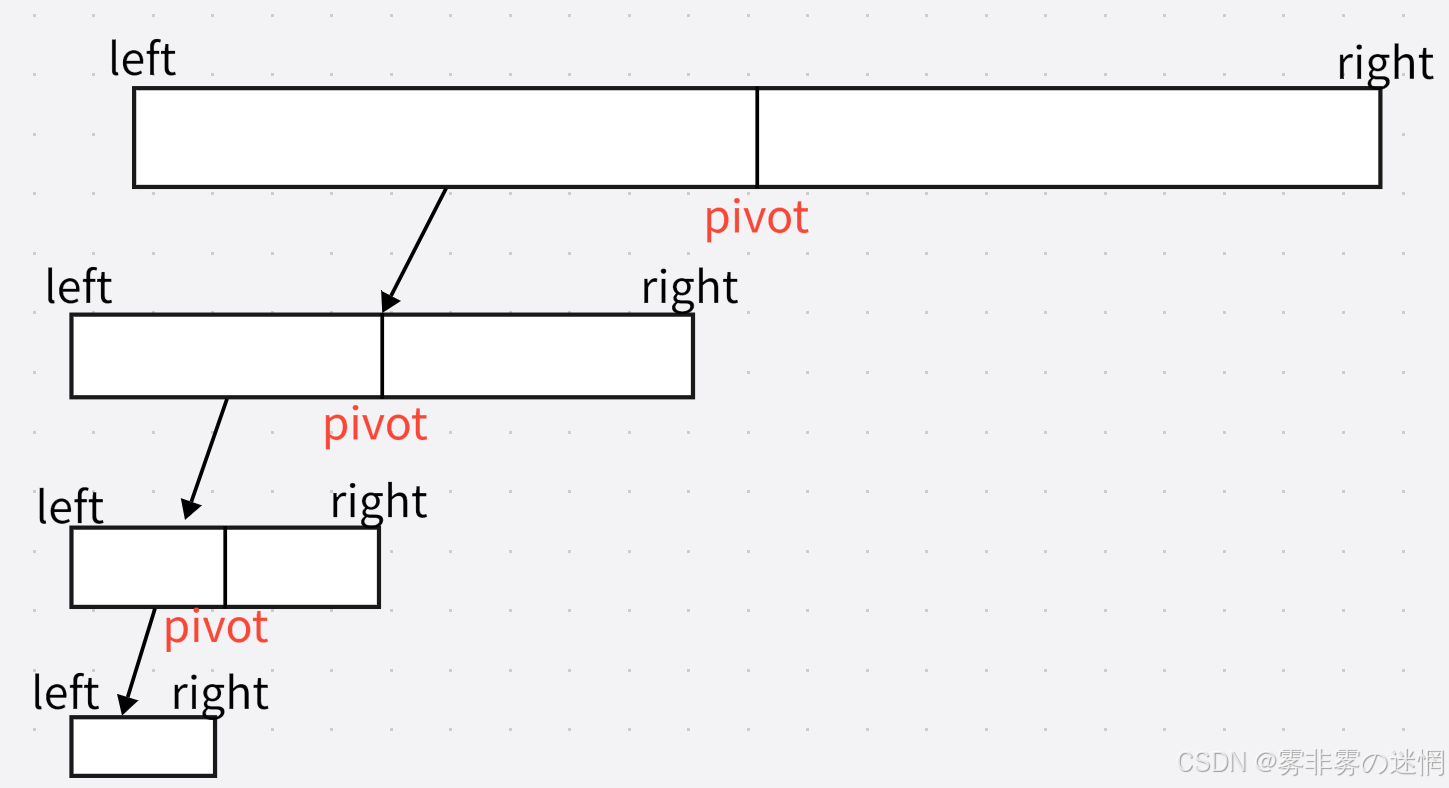 右边的区间是只改变left ,即右边区间是将基准值pivot+1作为每次参数的改变,如图: