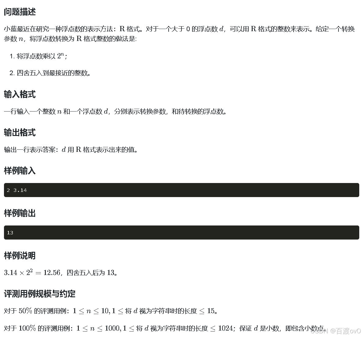 这道题主要考察了对浮点数的高精度写法 ,可以在最开始忽略掉小数点 ,随后进行累乘(高精度 * 低精度) ,再最后手动进位(高精度 + 低精度)。