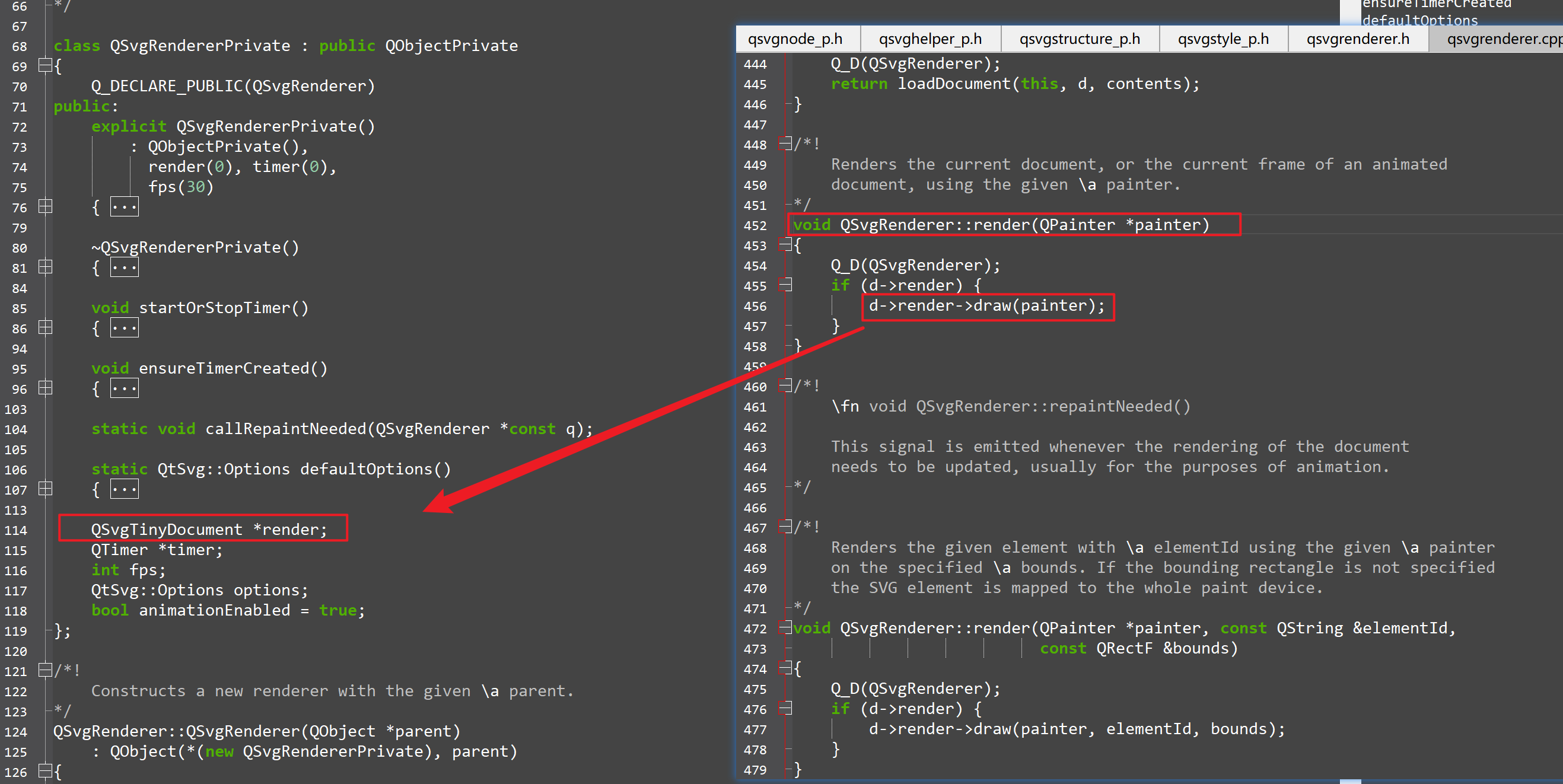 如果要使用 QT 的 svg 库只有通过 render() 方法,该方法的具体执行由 QSvgTinyDocument 类的 draw() 方法负责。