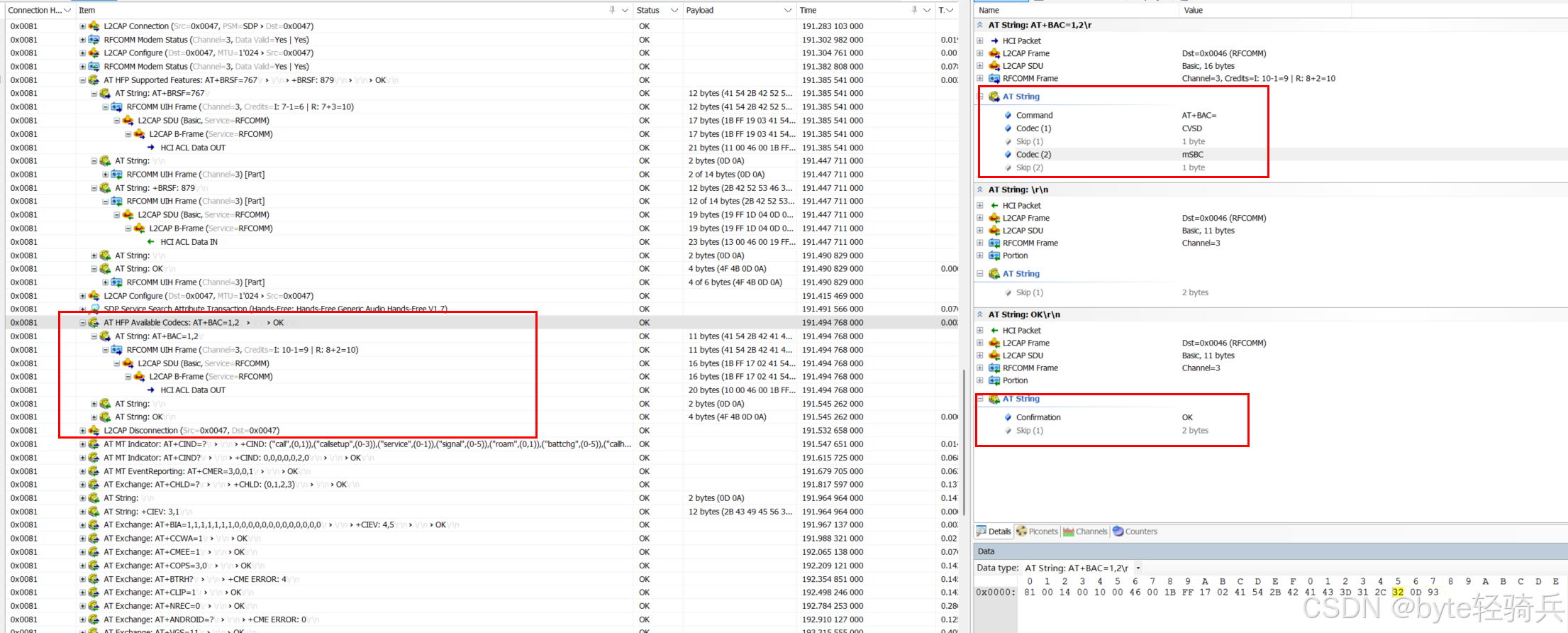 Codec_Negotiation,HF发送AT+BAC=<Available_Codecs>(如mSBC,AAC)。 -