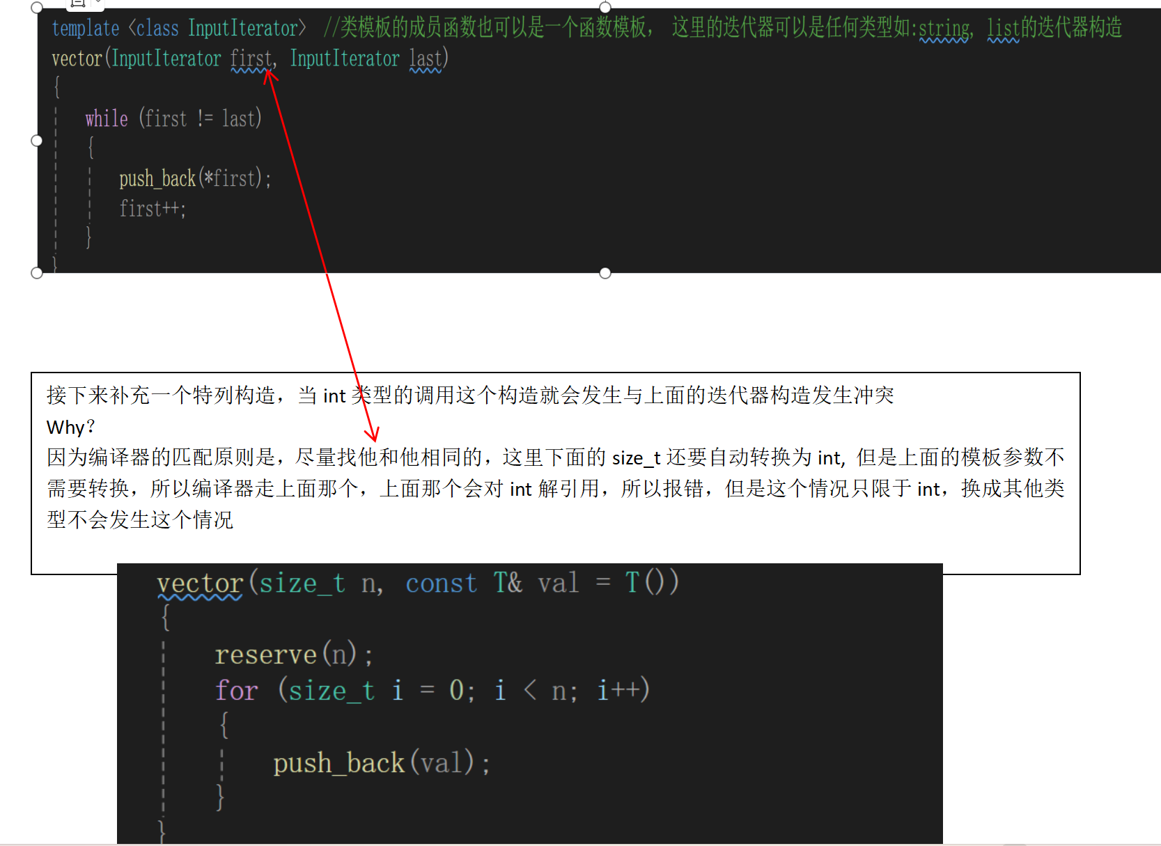 template <class InputIterator> //类模板的成员函数也可以是一个函数模板, 这里的迭代器可以是任何类型如:string, list的迭代器构造
