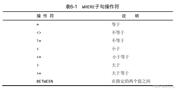 说明:在需要特定数据时需要根据条件对数据库中的数据进行过滤,即指定搜索条件(过滤条件),WHERE子句就是起到过滤数据的作用,WHERE字句的位置是在ORDER BY 子句之前。