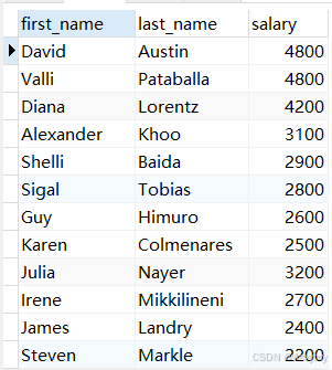 说明:使用BETWEEN时必须指定两个值,用AND连接,匹配时包括指定的开始值和结束值。