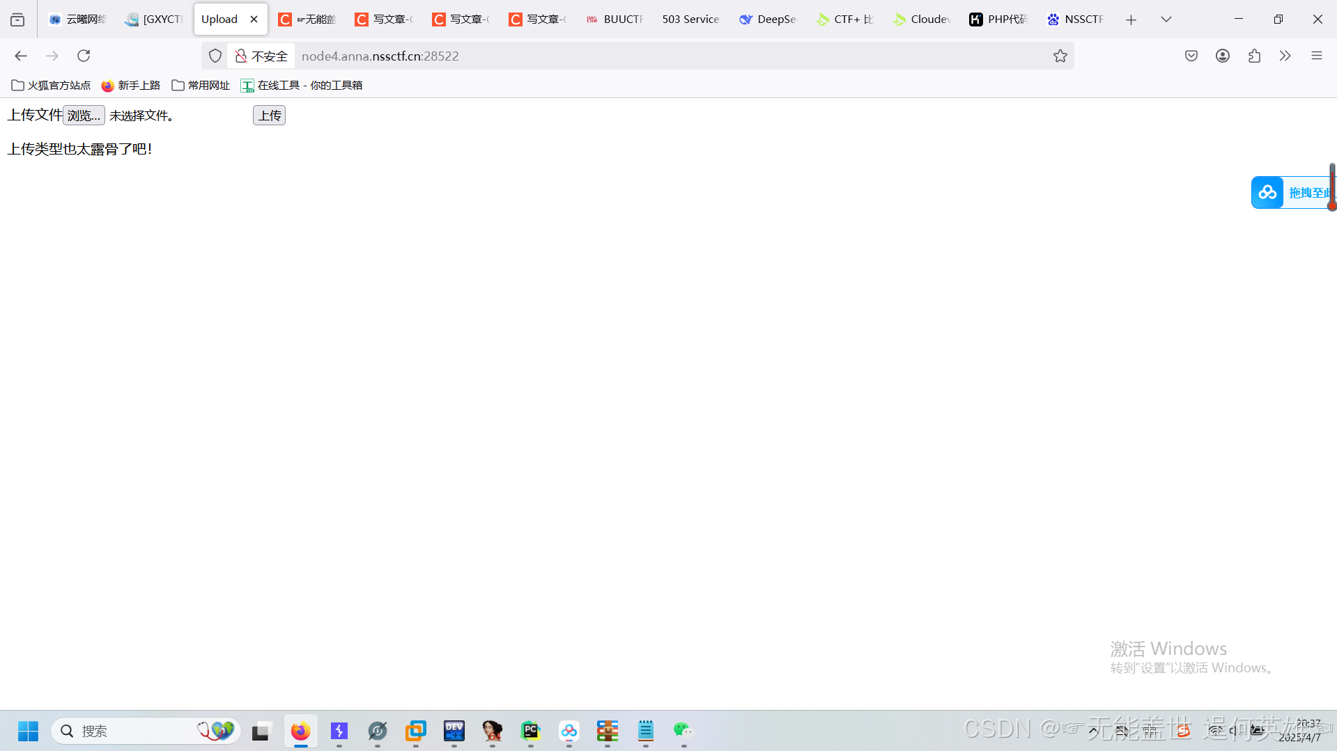开启题目后随便上传一个木马.txt文件,提示太露骨了
