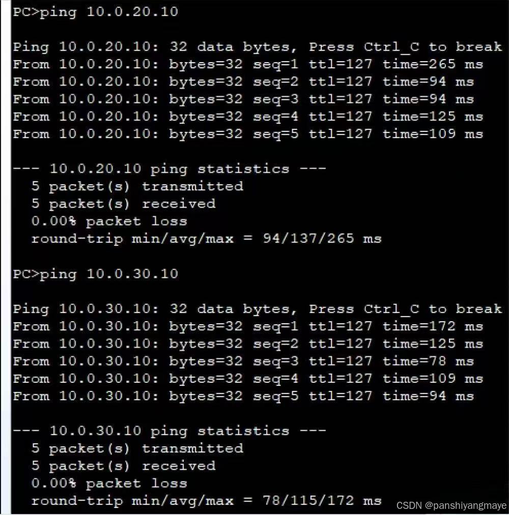 (2)在PC1 ping ISP的环回接口,检测连通性,实现全网可达。