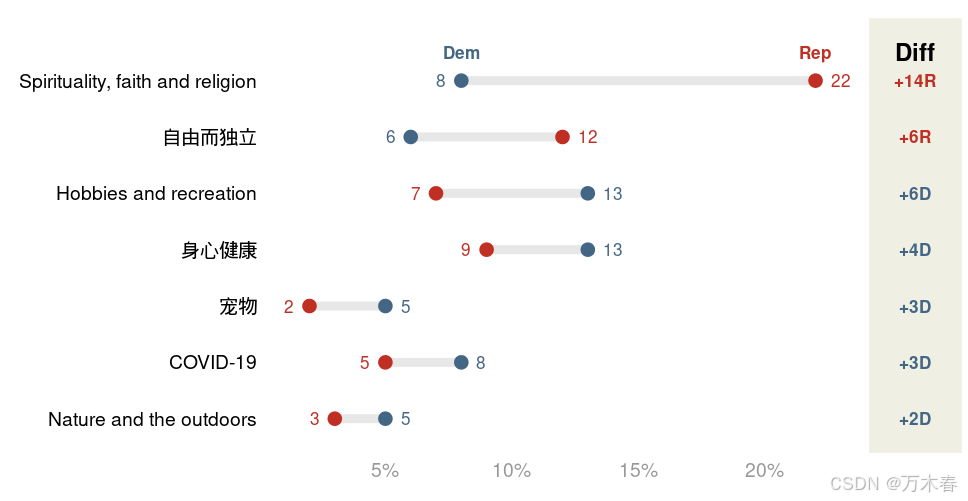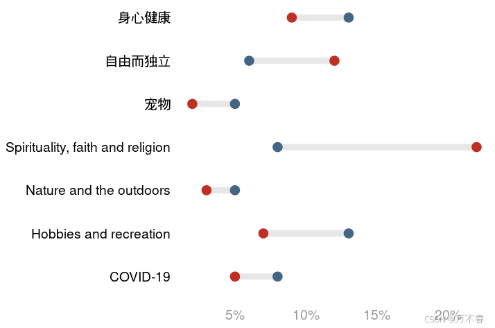 哑铃图(Dumbbell Plot)是一种用于对比两组数据差异的可视化图表,通过线段连接两个数据点,形似哑铃。每种数据可视化的方法,都有其优劣,它也不例外,一个简单的总结: