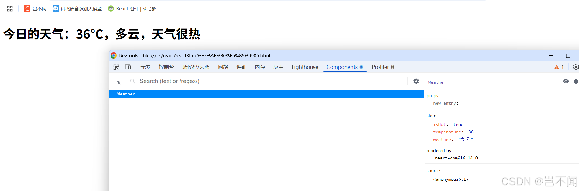 return <h1 onClick={this.changeWeather}>今日的天气:{this.state.temperature}°C,{this.state.weather},天气{this.state.isHot?'很热':'很冷'}</h1>