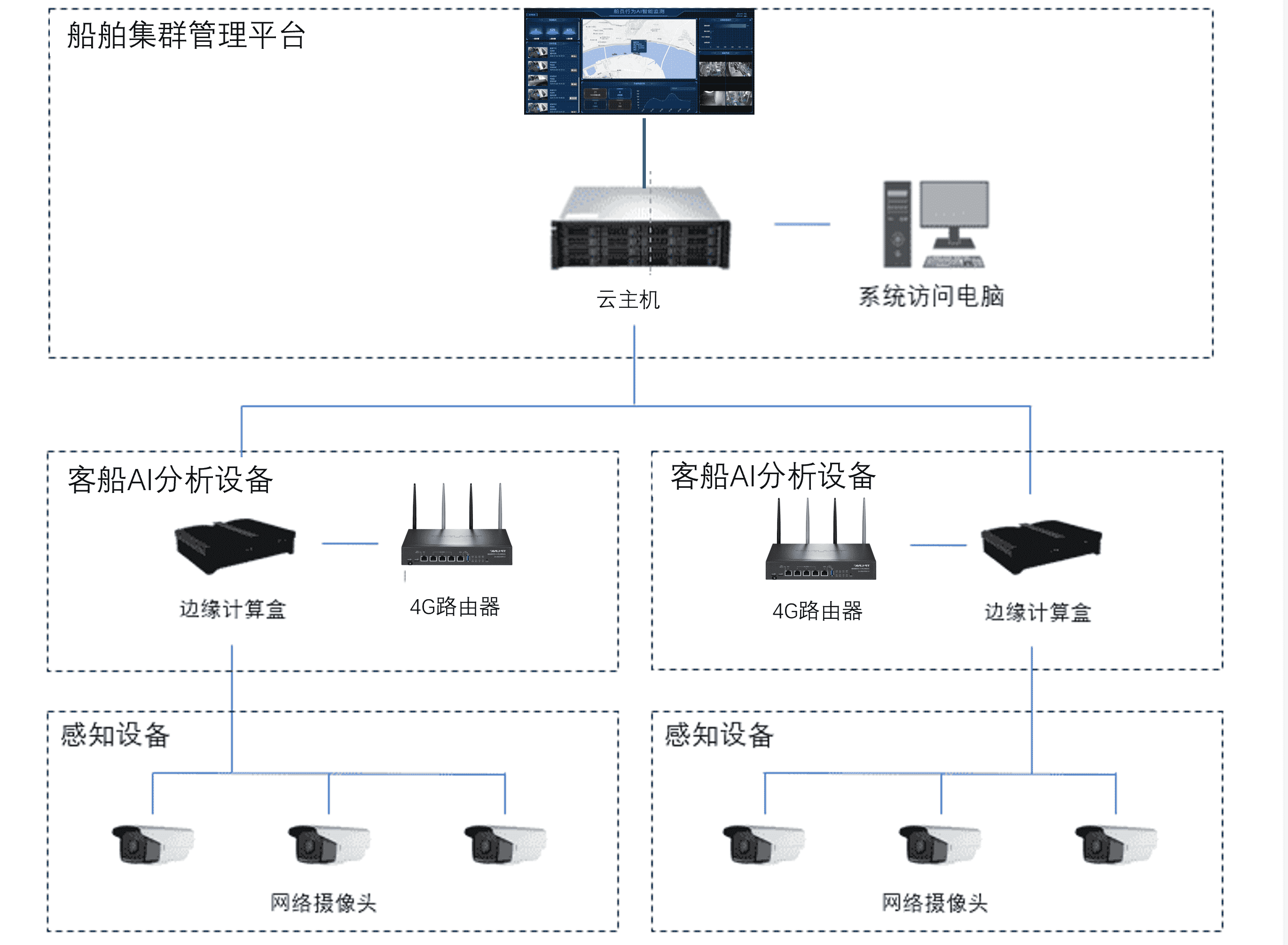 船舶在航行、作业过程中有着严格的规范要求,但在实际航行与作业中往往会因为人为的疏忽,发生事故,导致人员重大伤亡和财产损失; 为推动安全治理模式向事前预防转型,实现不安全状态和行为智能预警,起到有效防范作用,提升安全管理水平;智驱力联合海泓网络为新海华6完成船舶AI智能视频监控系统安装,通过蓝水母平台为所属26艘客船共同打造的船5G+A智能慧眼并正式投入使用。