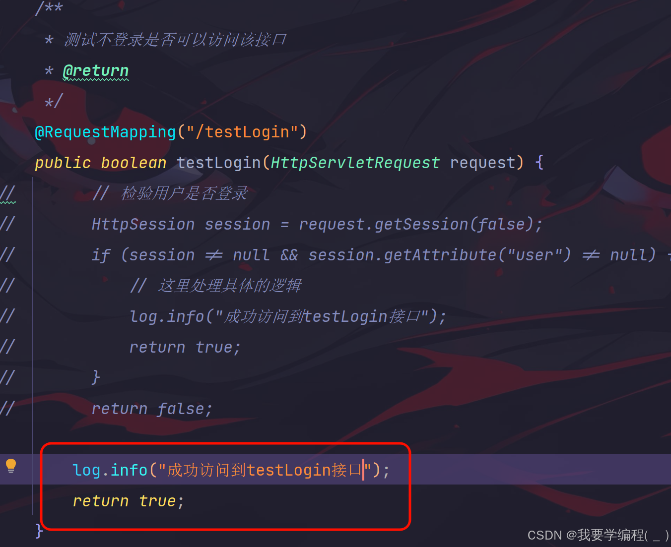 上述就是实现拦截器的基本框架,如果想要实现拦截未登录的用户的话,需要将 preHandle 方法内部的逻辑具体修改: