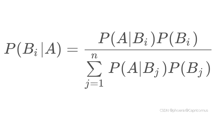 P ( B i ∣ A ) P(B_i|A) P(Bi∣A) :后验概率,表示在事件 A A A 发生的条件下,条件 B i B_i Bi 发生的概率。