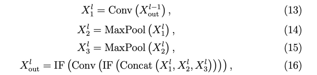 其中,Xl 表示第l层的输出,IF(-)表示 IF 神经元输出激活,Conv(-)表示卷积层,Split(-)将输入沿通道维度平均分割,Concat(-)将输入沿通道维度合并。