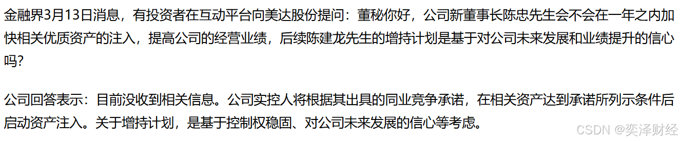 图 7 陈建龙将会加速资产注入上市公司(来源:金融界)