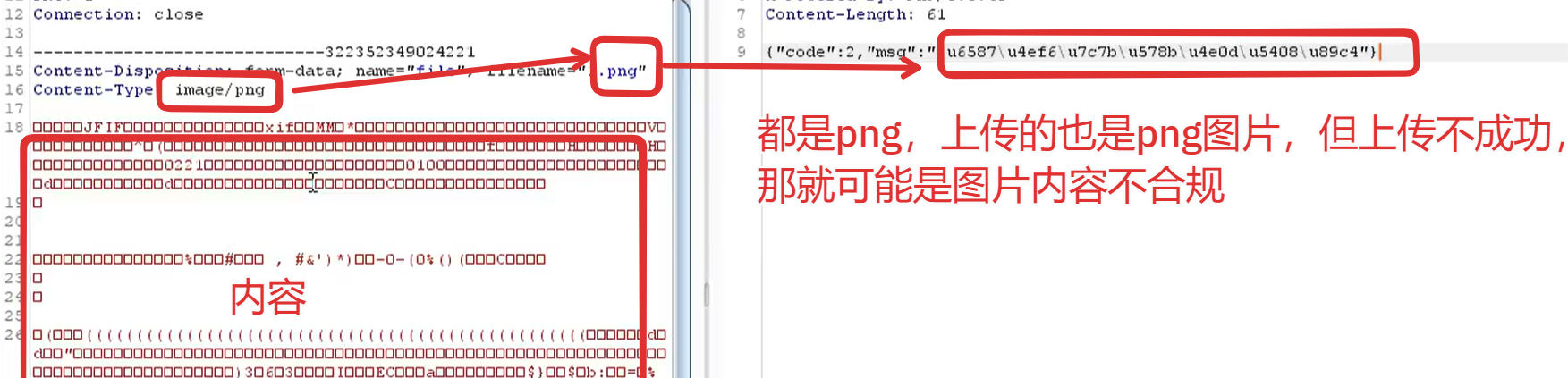 查看元素,发现是上传png文件,第一张png图片上传不过去,换一张上传成功。查看图片,发现上传过去的图片与原图大小(多少k)不太一样,即"二次渲染"。