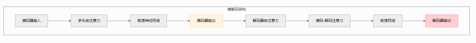 **听与说的完美配合:**模型左侧的编码器像专注的倾听者,将输入语句转化为蕴含深意的"记忆晶体"。右侧的解码器则是睿智的回应者,边生成文字边参考记忆晶体。这种分工协作的设计,使得模型可以处理"听"与"说"两个不同维度的任务。这种分工在代码中体现为: