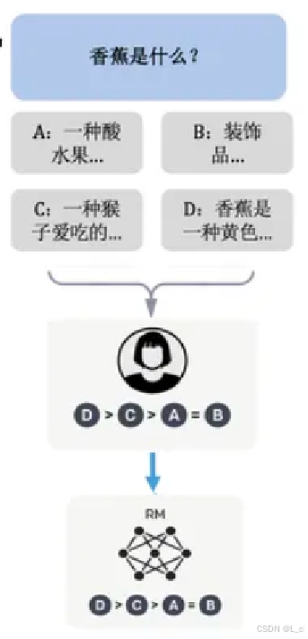 对于一个输入问题,获取若干可能的答案,由人工进行排序打分,两两一组进行Reward Model训练