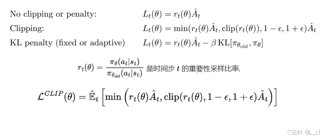 **ξ:**Clipping阈值(通常为0.1 ~ 0.2)