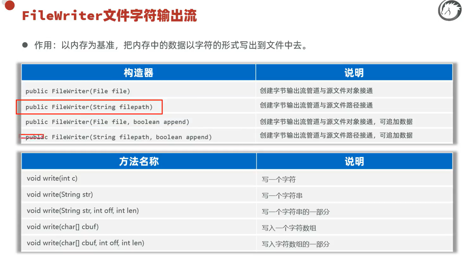层次不同:FileWriter 是一个直接用于写入字符文件的类,而 BufferedWriter 是一个装饰者(Decorator)类,它可以包装任何 Writer(包括 FileWriter)来提供缓冲功能。