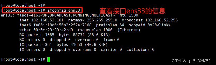 ifconfig 接口名 #显示指定网络接口的详细配置信息