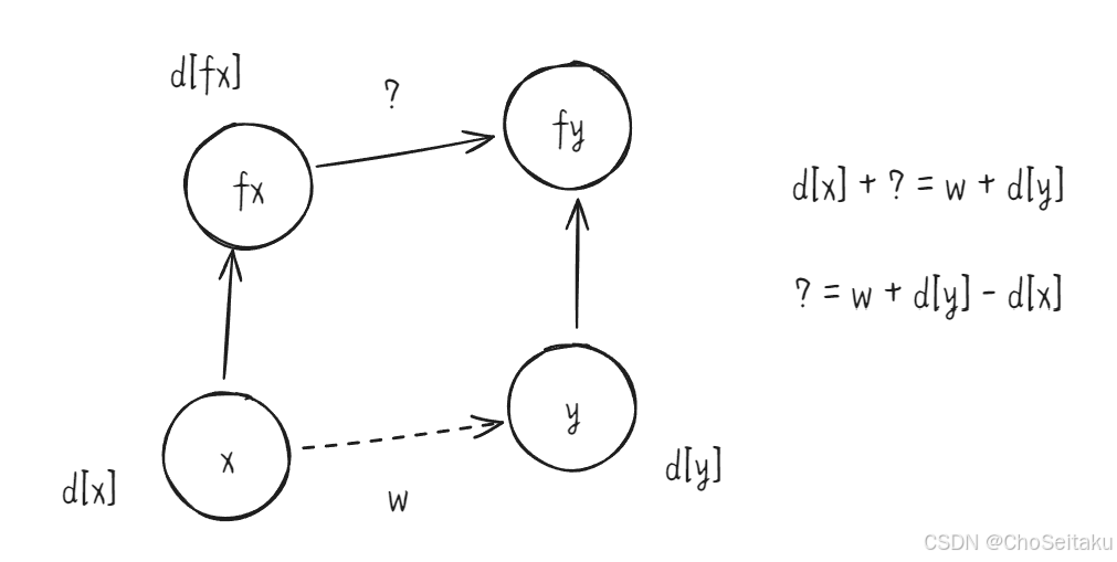 d[fx] = d[y] + w - d[x];