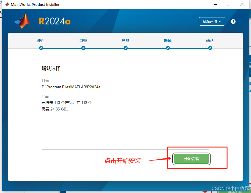 点击【开始安装】按钮,开始安装。