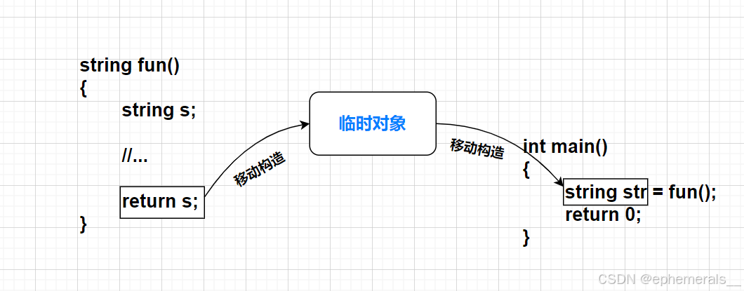 传参时,如果传入临时对象,也会通过移动构造直接将资源进行移动,免去了对象拷贝时的时间消耗。