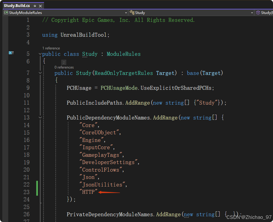 - 在"xxx.Build.cs"中添加"HTTP"模块