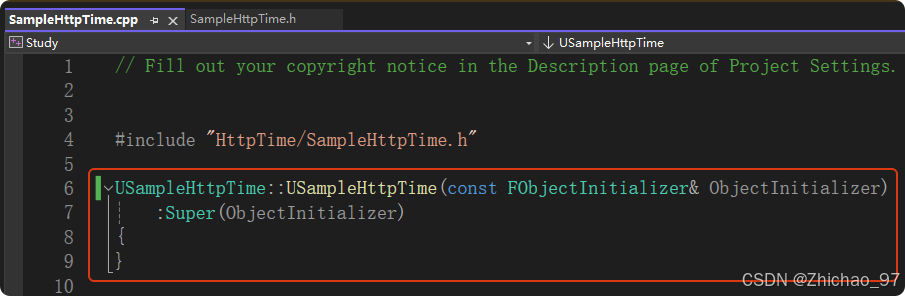 继续实现 SampleHttpTimeAsyncAction 静态函数,该函数创建一个 USampleHttpTime 对象,并设置其网络时间类型。RegisterWithGameInstance 函数用于将该异步操作对象注册到游戏实例中,确保其生命周期与游戏实例同步