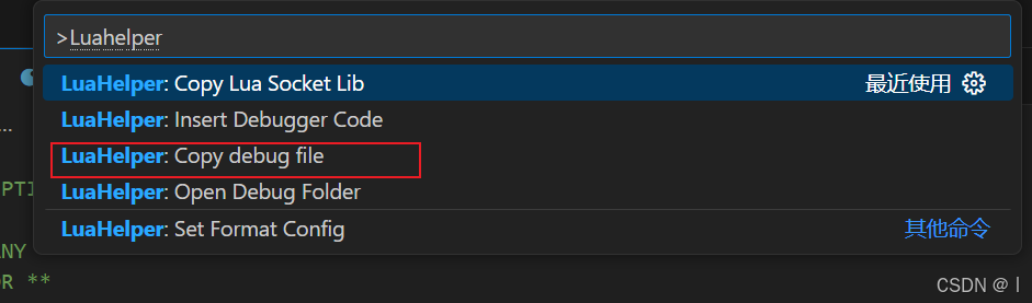 打开VsCode,ctrl+shift+p搜索LuaHelper,选择复制调试文件