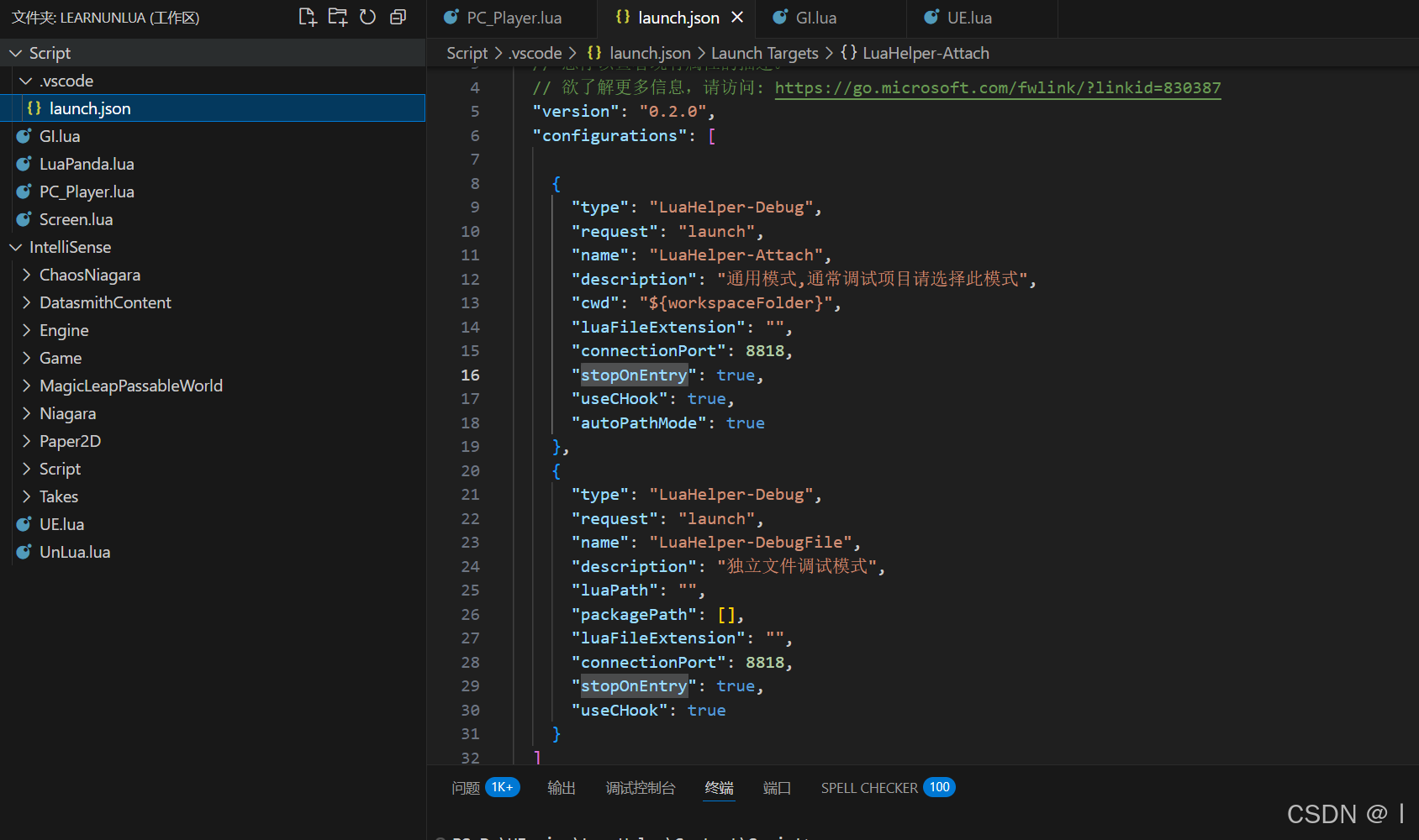 确保使用LuaHelper-Attach调试