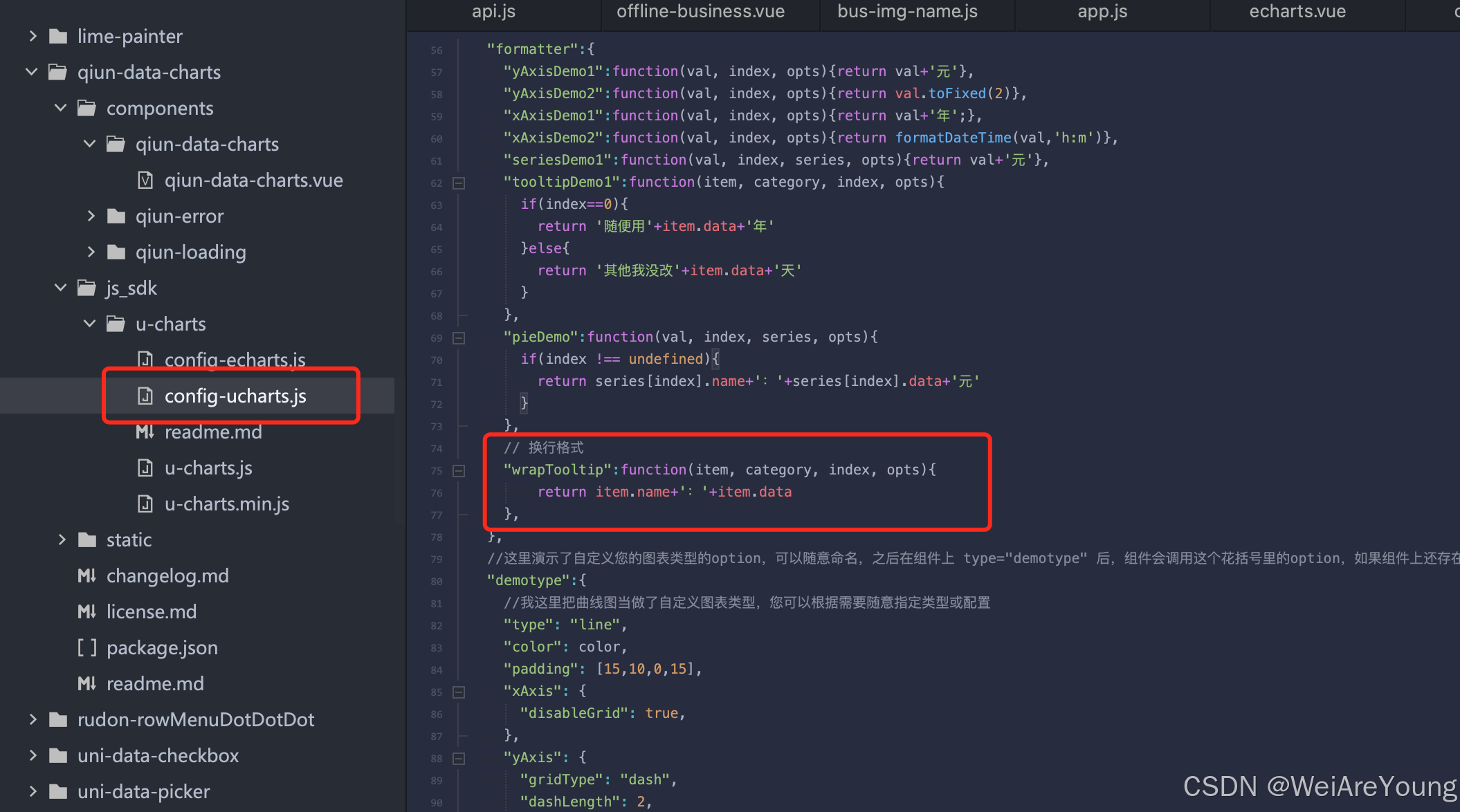 第二步:在config-ucharts.js文件中配置换行格式