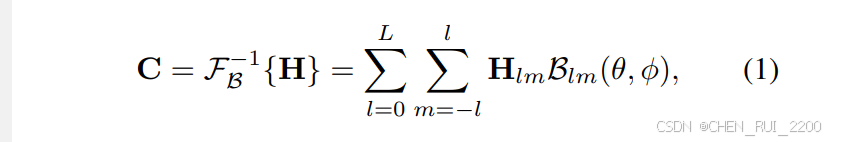 输出空间。UniK3D的输出表示旨在与任何场景和相机配置通用兼容,为每个输入图像提供直接的度量3D场景估计。借鉴了[60]中提出的分离策略,我们的方法将相机参数与场景几何分离。具体来说,我们使用密集张量C=θ||ϕ来表示相机,其中θ极角,ϕ是方位角,与标准的球坐标系一致。然而,我们在完全球形框架内使用欧几里得半径(相机中心到场景的距离)作为场景范围组件,而不是依赖于传统的垂直深度基表示法。这种设计选择确保了图像中投影物体的尺寸随着半径单调变化,这一属性并不特征深度表示,使得后者更难学习。此外,球形框架在处理靠近xy平面的点时增强了数值稳定性,这是前面的方法通常在大梯度区域面临挑战的地方。我们使用一个双射变换将球坐标表示转换为笛卡尔坐标,准确捕捉场景的3D几何作为输出的3D点云O。相机内部空间。在UniK3D中,表示各个像素的观察方向的密集光束通过基分解来表达,提供了一个灵活且全面的角度表示。如图2所示,我们的角度模块预测一个系数张量H,它是由编码器的类标记T衍生的。这些系数对应于一个预定义基:球谐函数(SH)基。使用以下公式下重构光束: