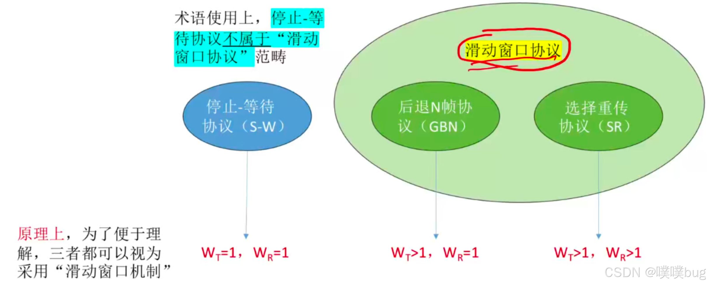 (否则,若接收窗口大于发送窗口,则接收窗口永远不可能填满,接收窗口多出的空间就毫无意义)
