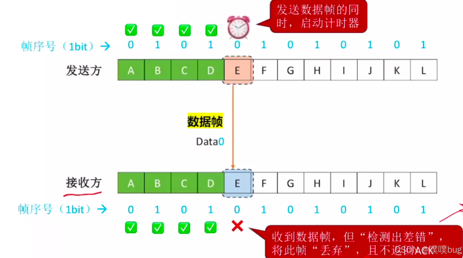 如果接收方检测出数据帧有"差错"并将其丢弃,会发生什么?
